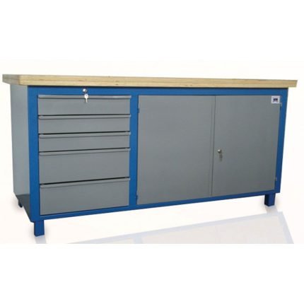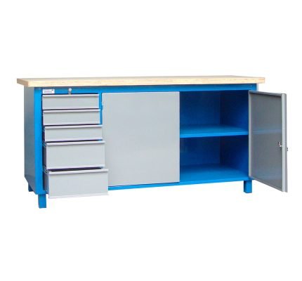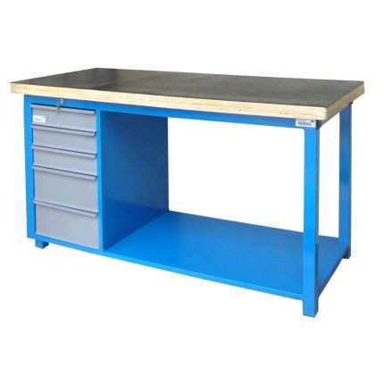 Organização e durabilidade para sua área de trabalho! Esta bancada de 300 kg de capacidade é ideal para oficinas e laboratórios. Possui 1 gaveta para praticidade e um robusto tampo em madeira compensado virola de 25 mm, selado e envernizado. Confeccionada em aço com pintura Epóxi e solda MIG, garante máxima resistência.